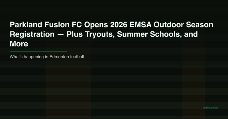Parkland Fusion FC, serving Spruce Grove, Stony Plain, and Parkland County, has opened registration for the 2026 EMSA outdoor football ⚽ season. The club offers a wide range of programs for youth players from U9 through U17, including the Fusion Development Centre, the Rising Stars Academy, the She Plays Program, and adaptive football ⚽ for players with disabilities or neurodiverse needs. Families can register and find full program details at parklandfusionfc.com.