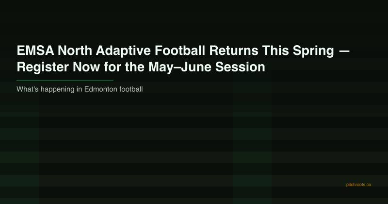 The EMSA North Adaptive Soccer Program is back for spring 2026, with sessions running May 12 through June 9 — offering an inclusive football ⚽ experience for children and youth with disabilities and neurodiverse participants in the north Edmonton area. With outdoor registration for standard programs already closed and waitlists in effect, this adaptive session represents one of the remaining registration opportunities through EMSA North this season. Families interested in the program are encouraged to visit emsanorth.com to secure a spot before the session begins.